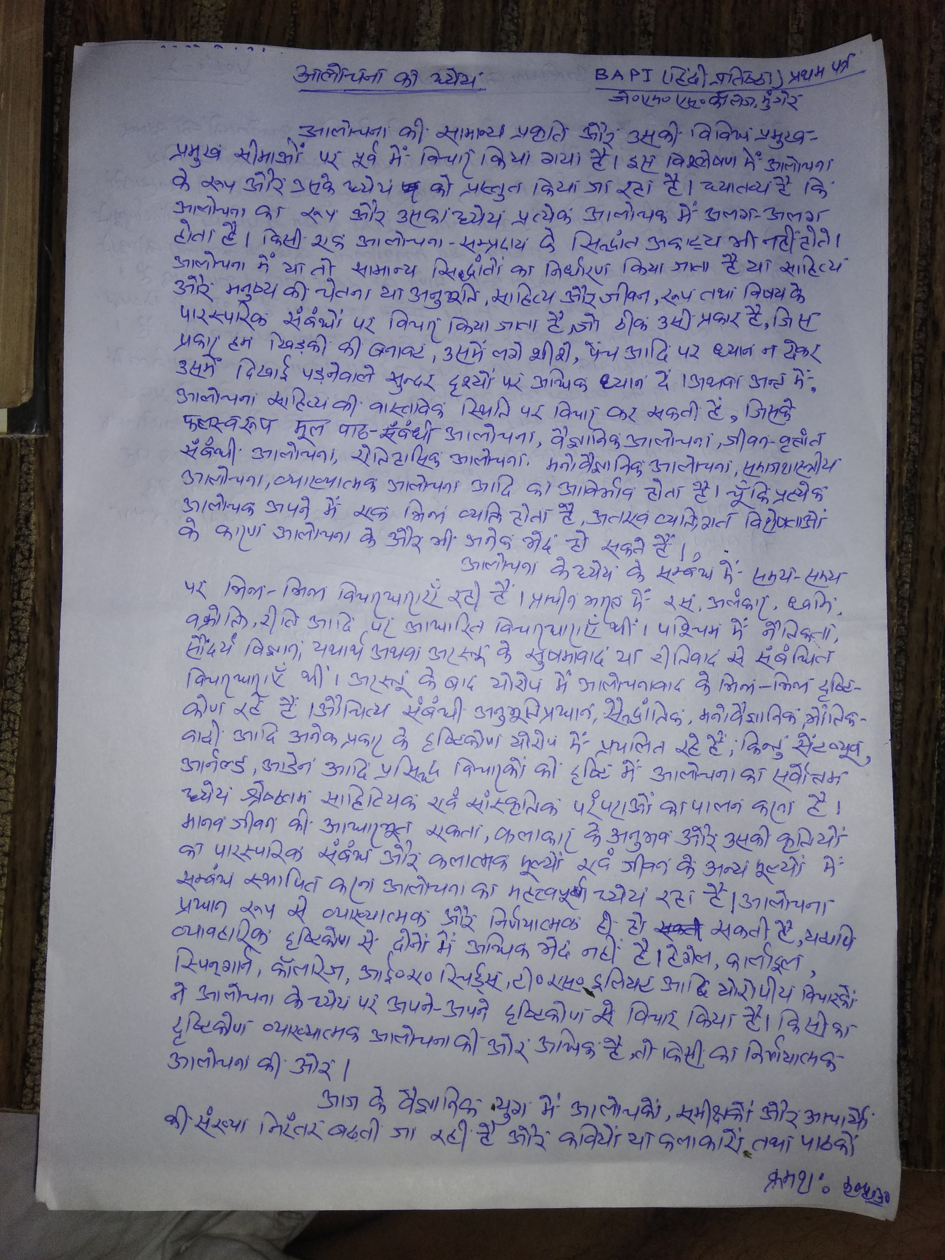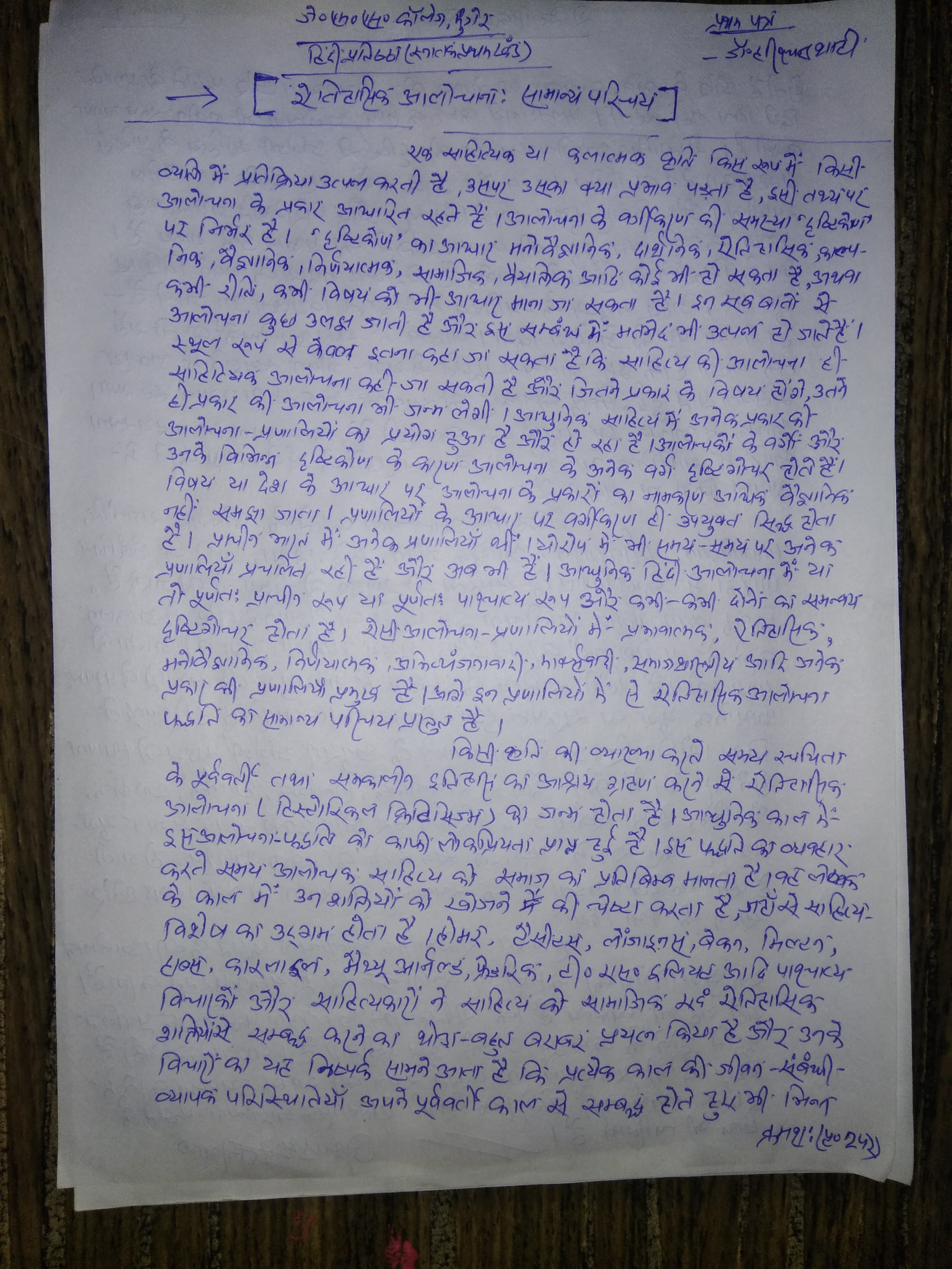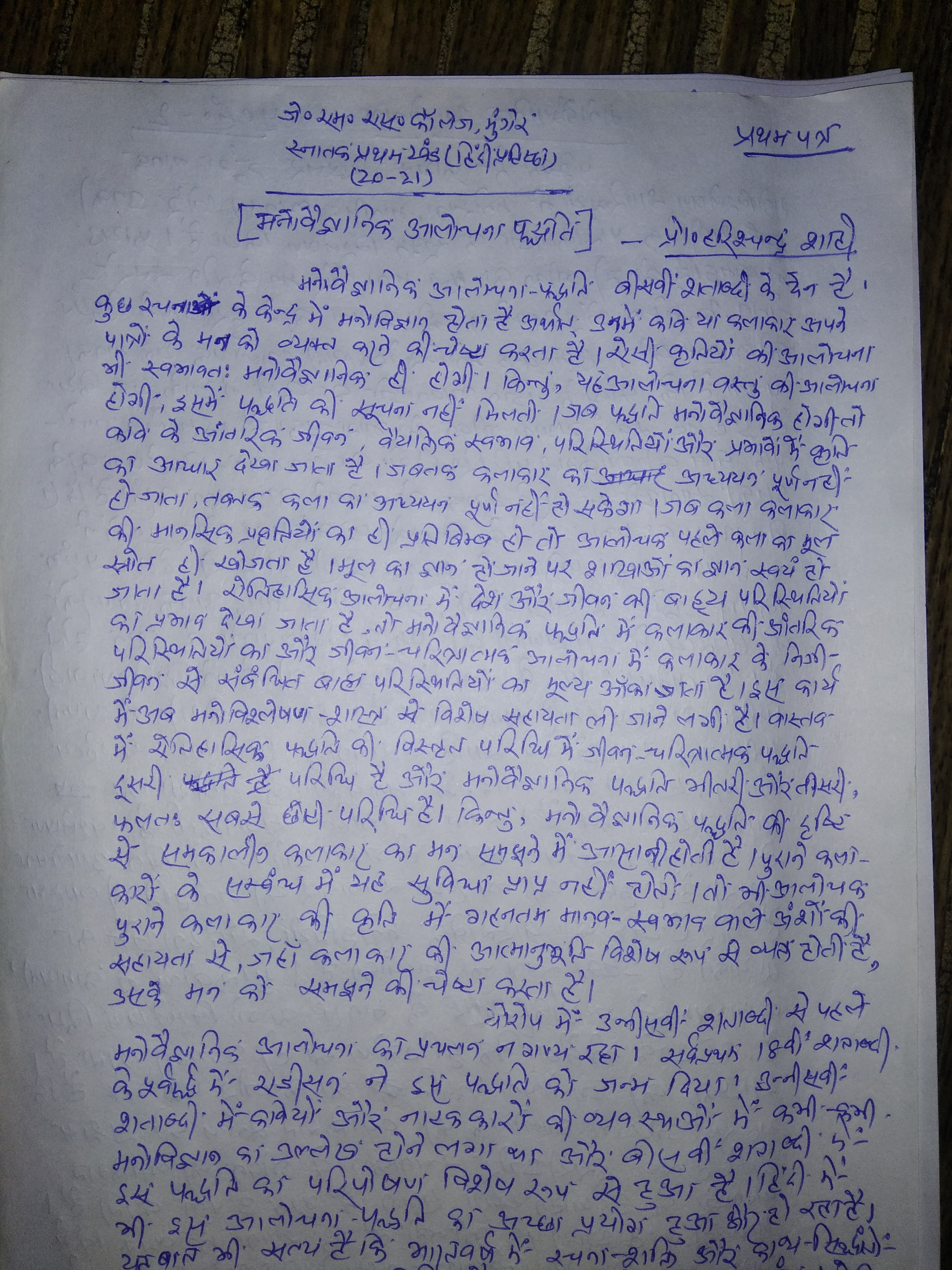 | 169 | BA - I | Hindi | प्रथम पत्र,आलोचना- | Pr. Harischandra Shahi | 24-07-2020 |