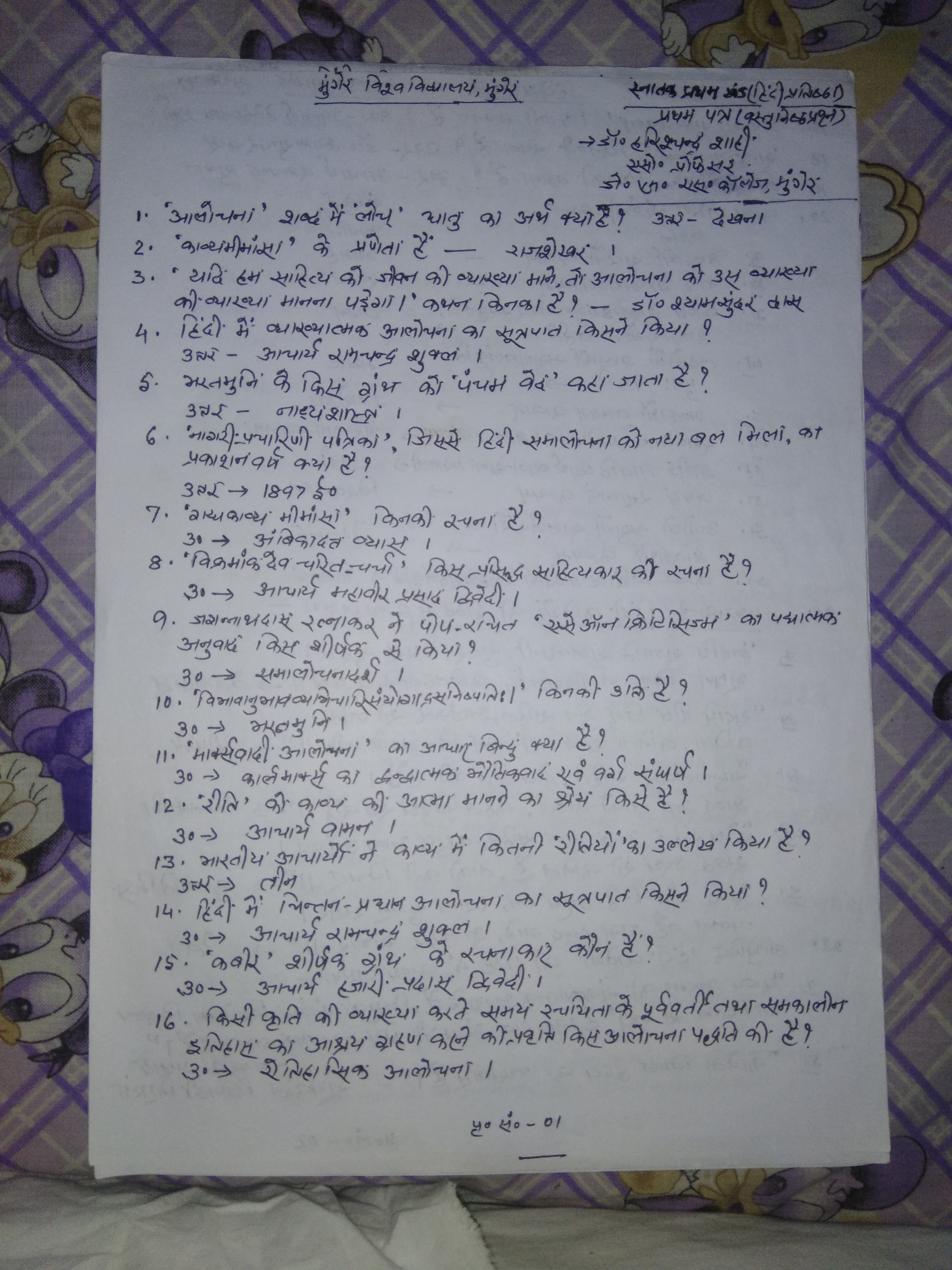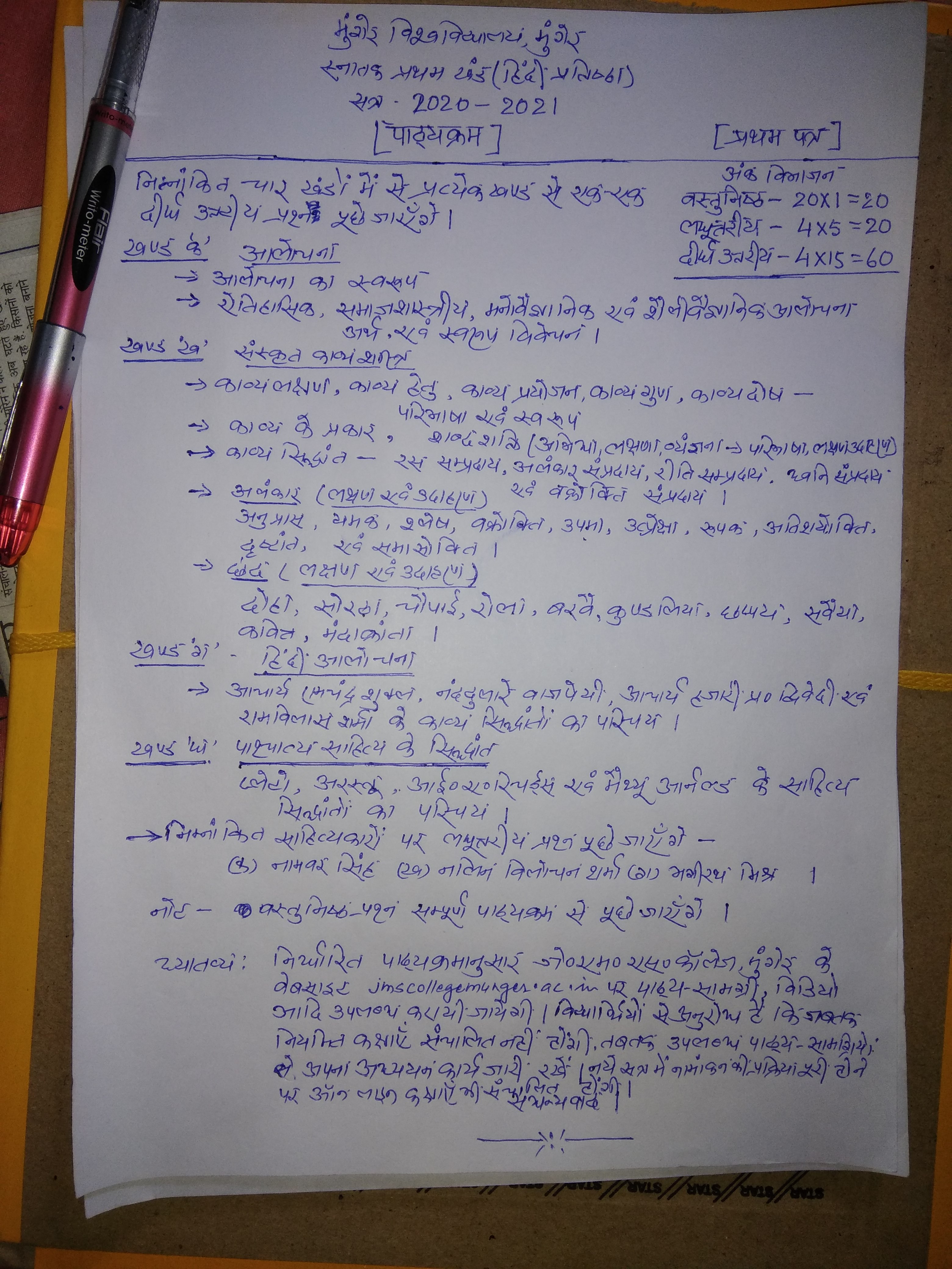 | 173 | BA - I | Hindi | प्रथम पत्र,आलोचना- | Pr. Harischandra Shahi | 23-07-2020 |