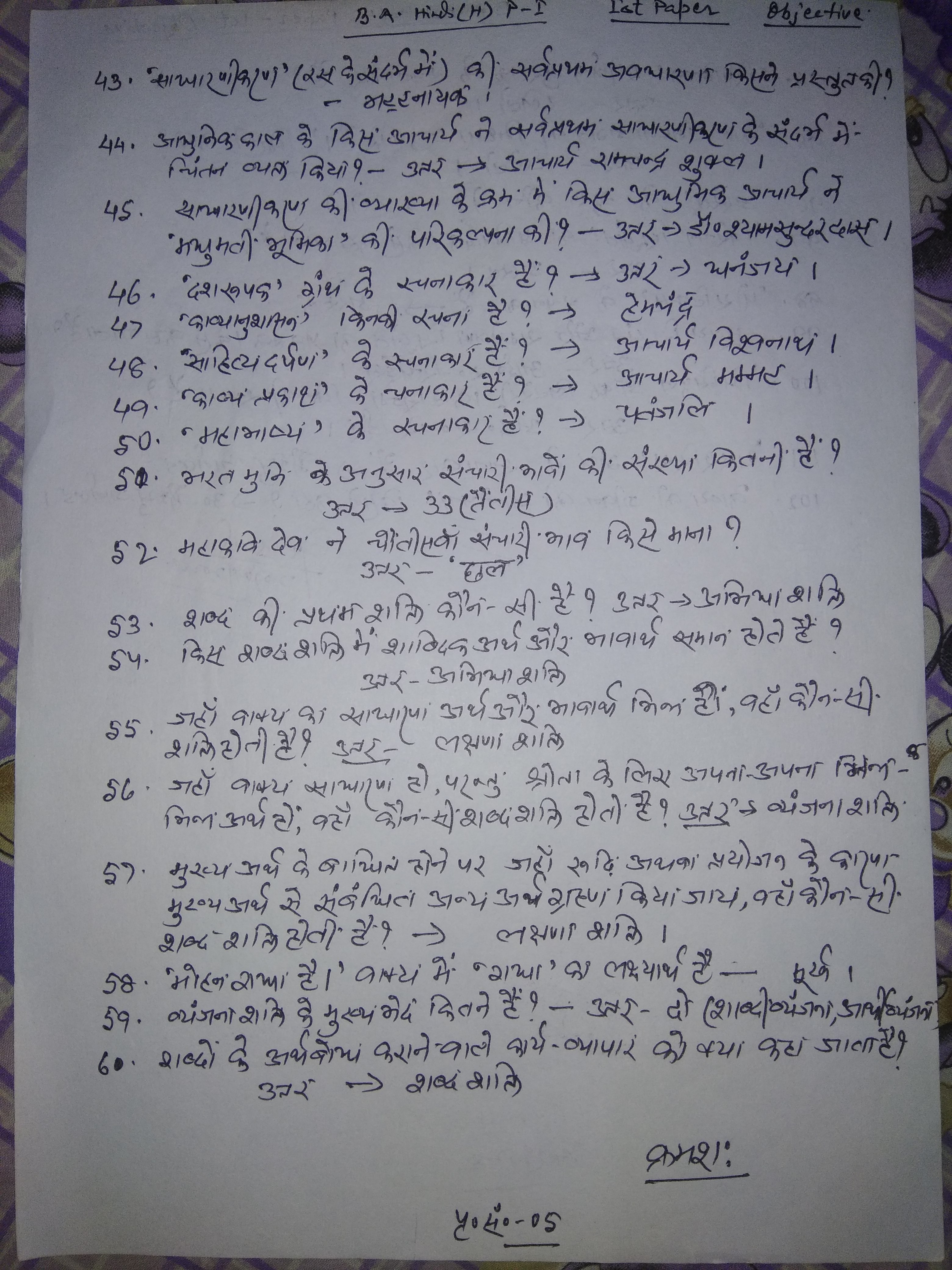| 265 | BA - I | Hindi | HINDI OBJ. PAPER 1 | Pr. Harischandra Sha | 26-04-2020 |