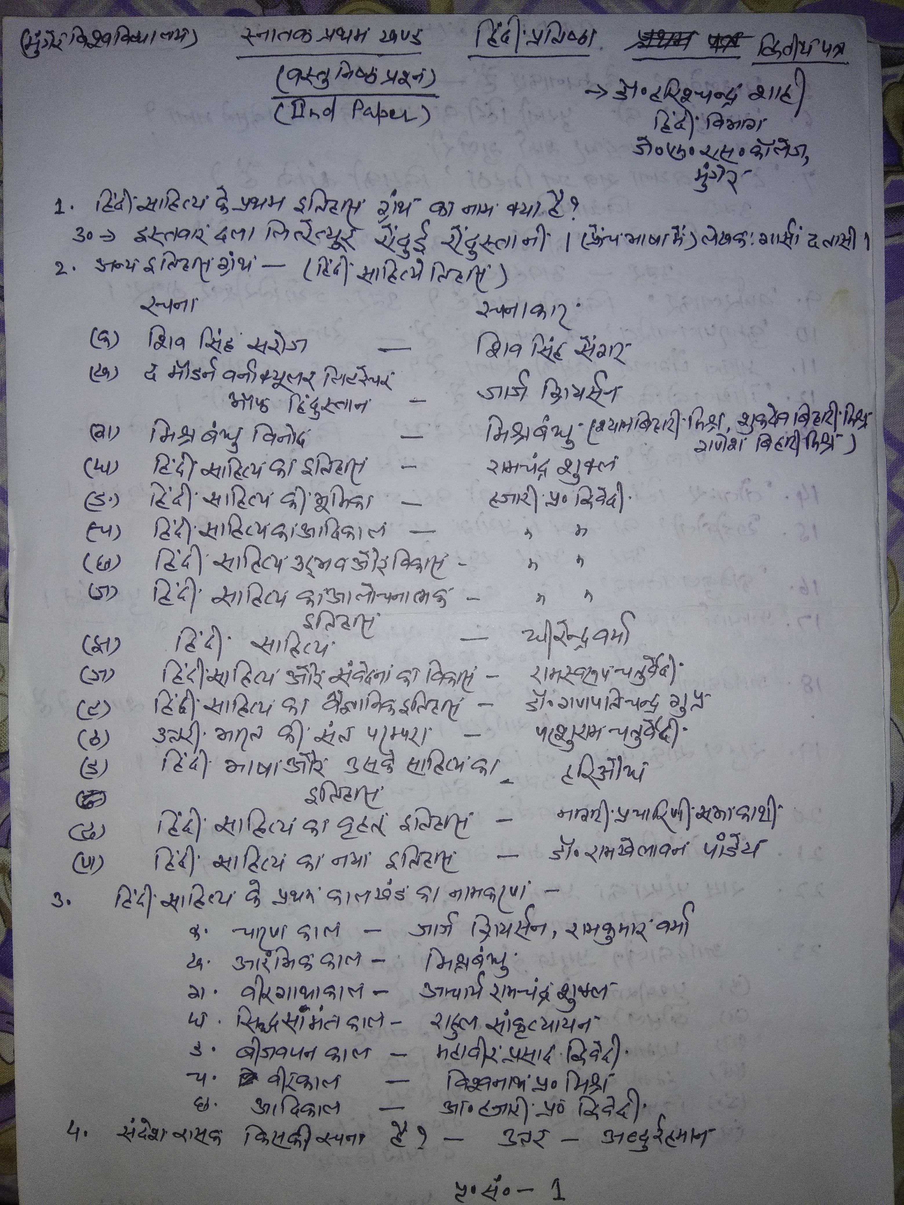 | 266 | BA - I | Hindi | HINDI OBJ. PAPER 1 | Pr. Harischandra Sha | 26-04-2020 |