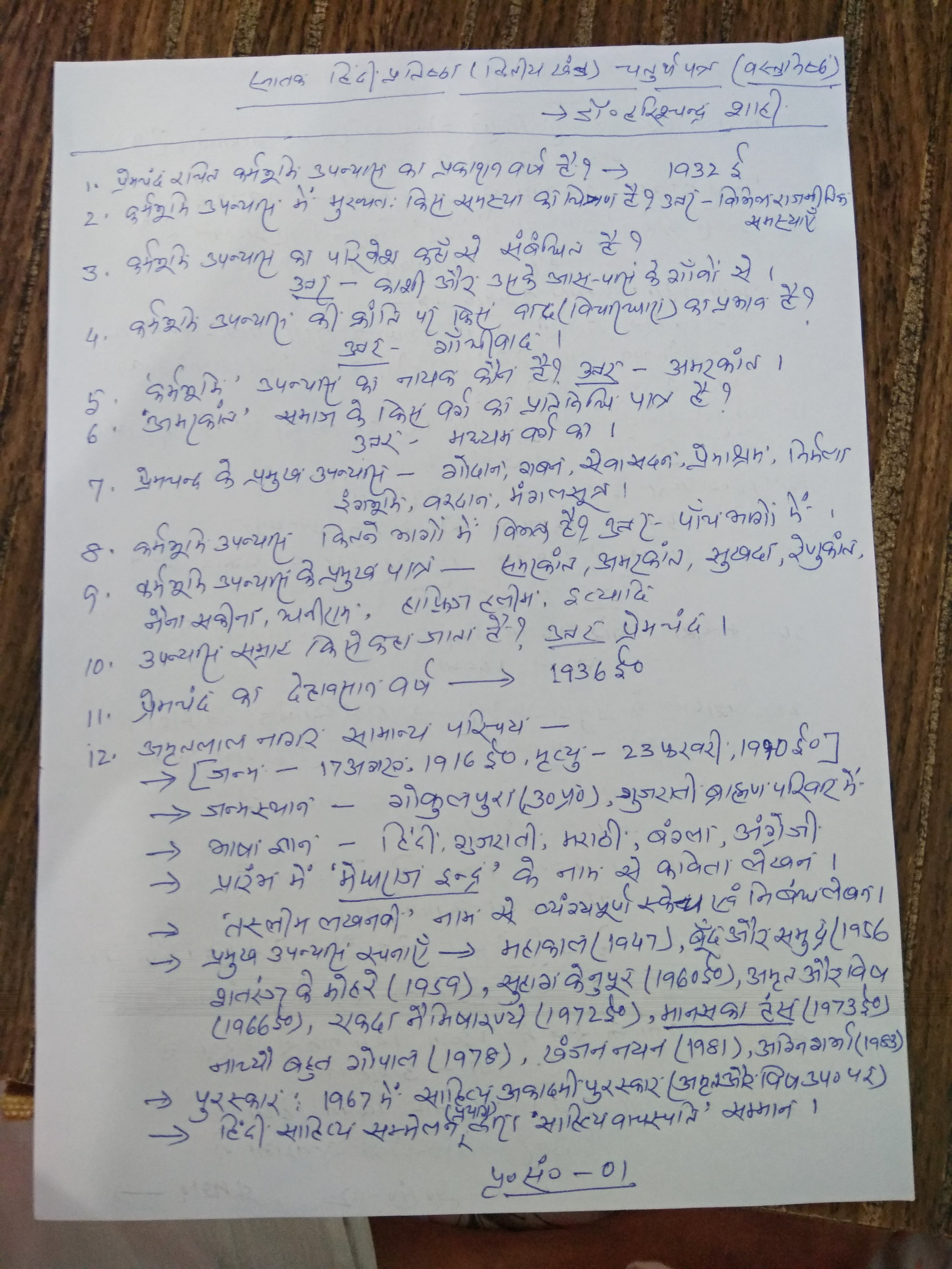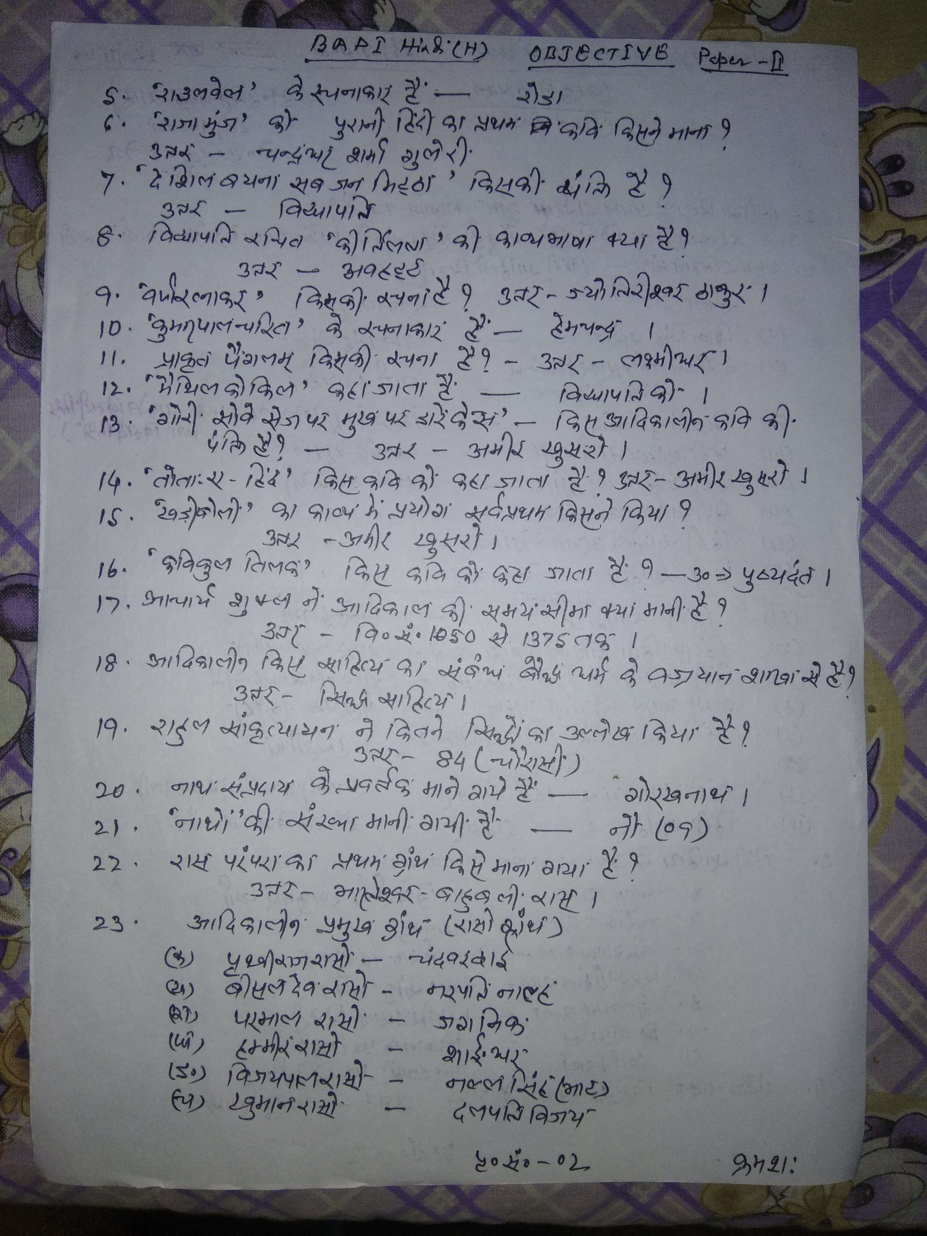 | 225 | BA - II | Hindi | Hindi objective paper 3 | Pr. Harischandra Shahi | 12-05-2020 |