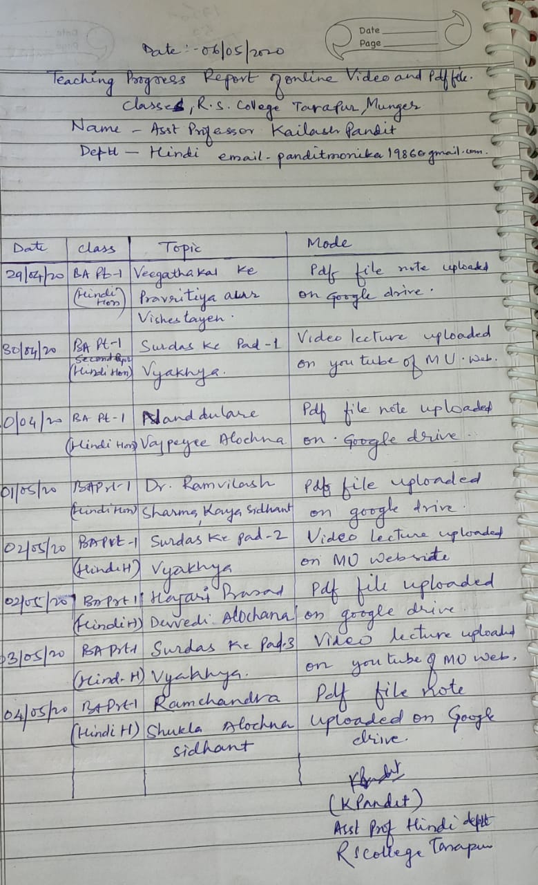 | 251 | BA - I | Hindi | HINDI OBJ, Paper- II-follow-up | Pr. Harischandra Shahi | 30-04-2020 |